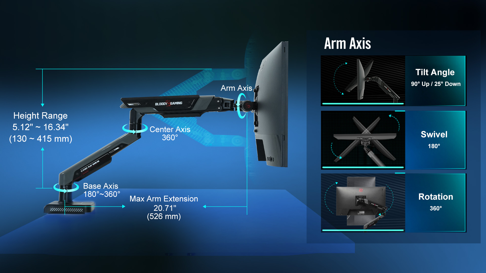 Height Range: 5.12" ~ 16.34" (130 ~ 415 mm)
