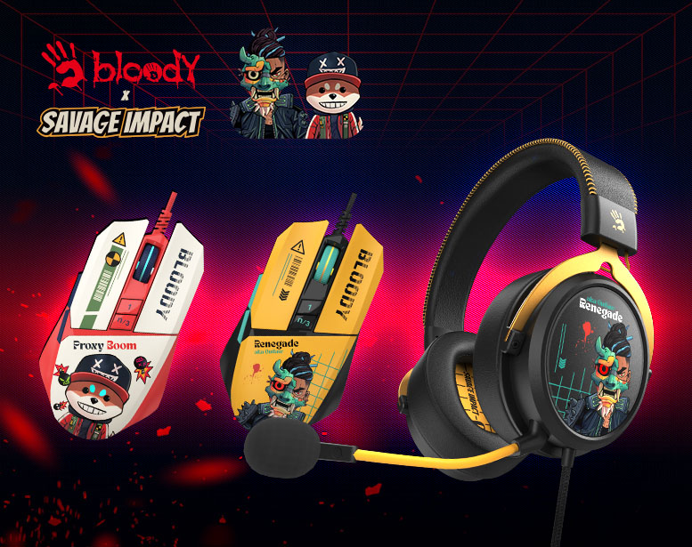Стратегическая коллаборация Bloody, сосредоточенная на внедрении уникальных дизайнерских решений в линейку собственных продуктов, положила начало новой тематической серии под названием Savage Impact. Новаторская линейка Savage Impact представляет образы персонажей в стилистике комиксов и сочетает их с выдающимися характеристиками, которые обогащают дизайн и функционал киберспортивных аксессуаров.
