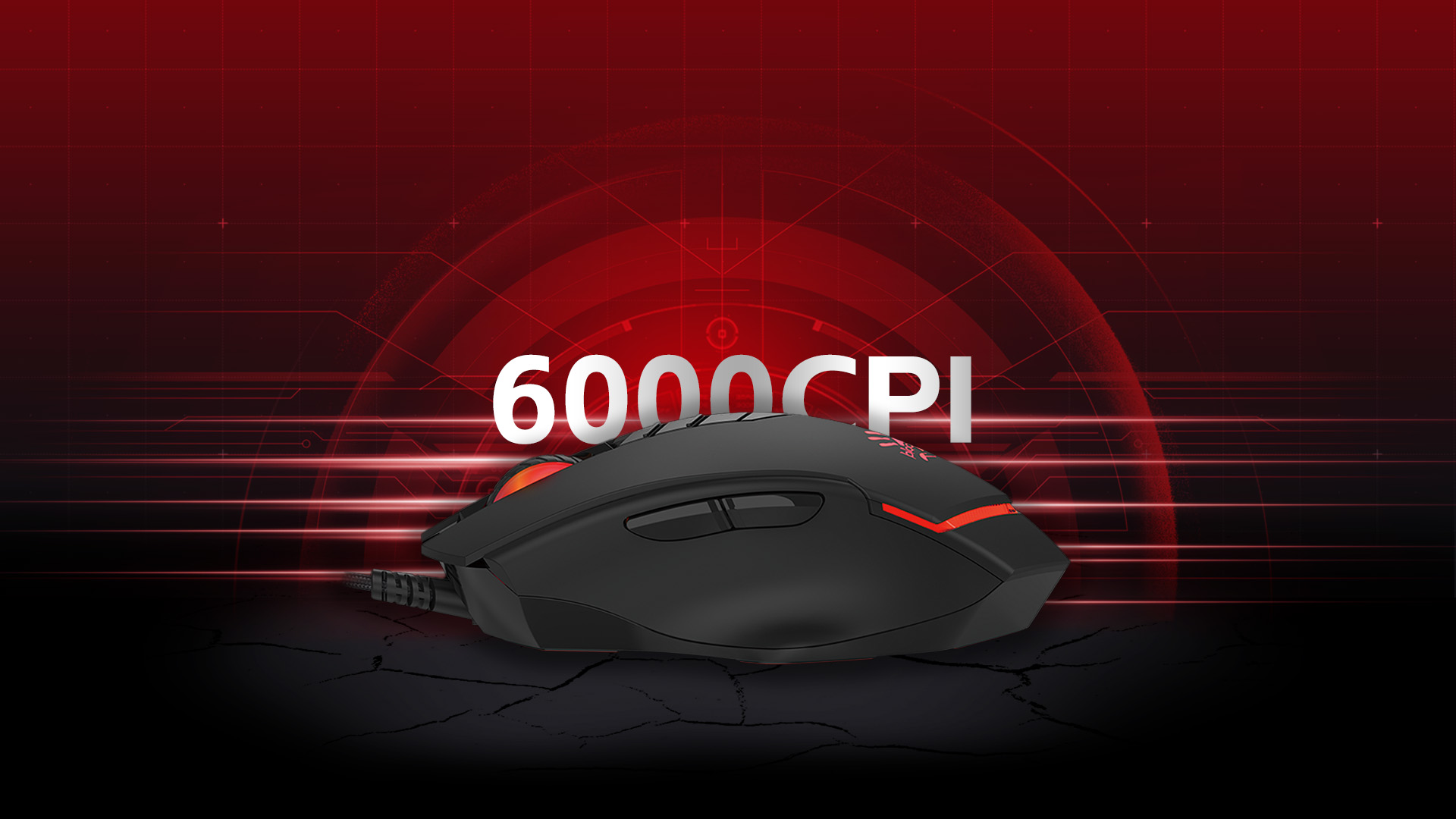 Adjustable 100–6000 CPI resolution, tailored for various screen sizes and gaming preferences.