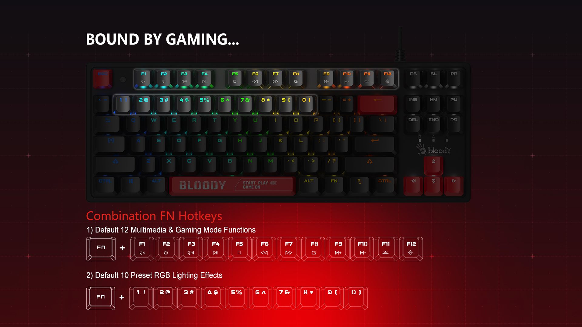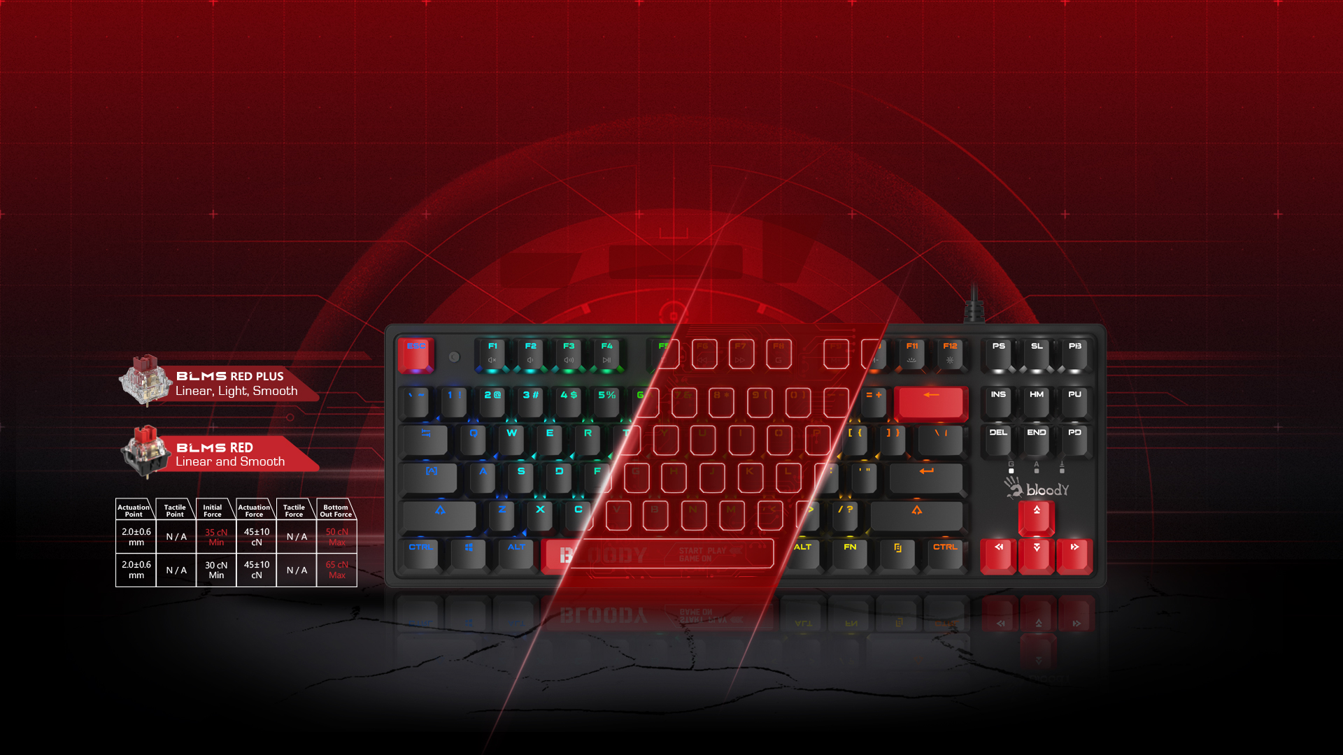 BLOODY MEKANİK SWITCH'Lİ RGB TKL KLAVYE (Hot-Swappable)
